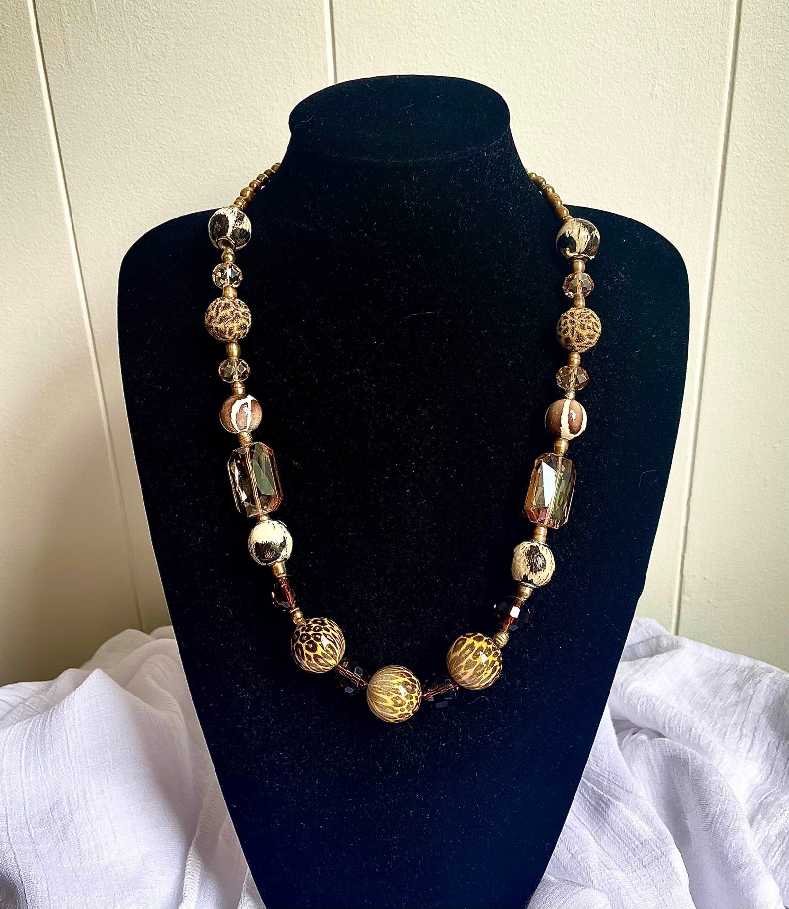 Perfect for the animal lover! This handcrafted animal print beaded necklace shows off a myriad of different prints while still being stylish and fun.