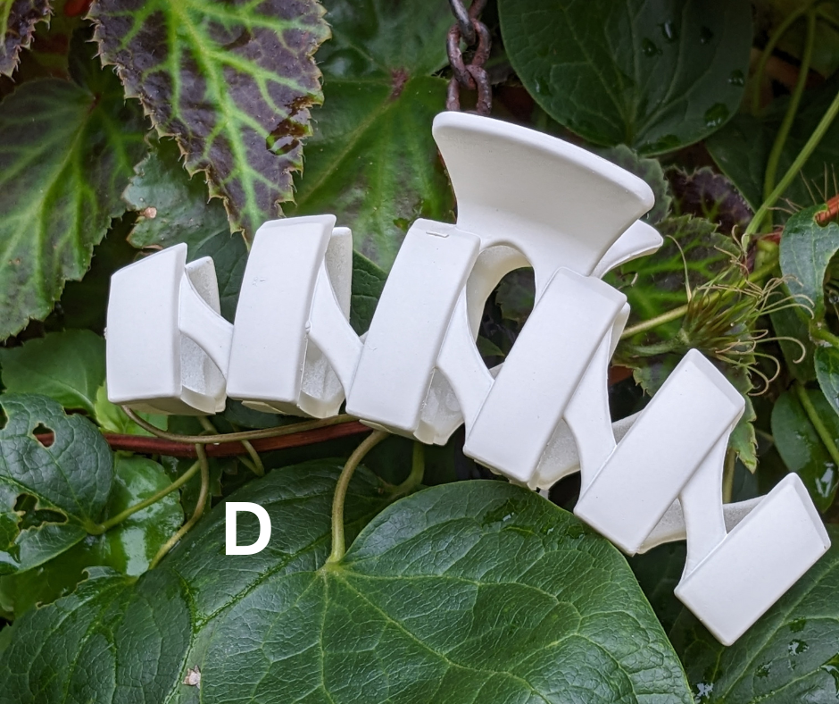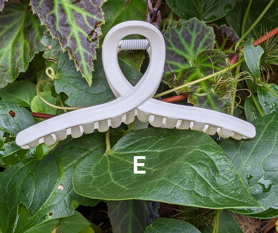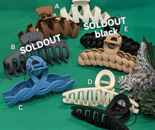 Keep your tresses tidy and fetchingly up off your face with one of these lightweight hair clips. There is a variety of shapes and sizes to meet your needs, all in neutral-ish matte earth tones of slate blue, gray, camel, deep taupe, cream, beige, and classic black, or shiny finish aqua or soft peach.Â
