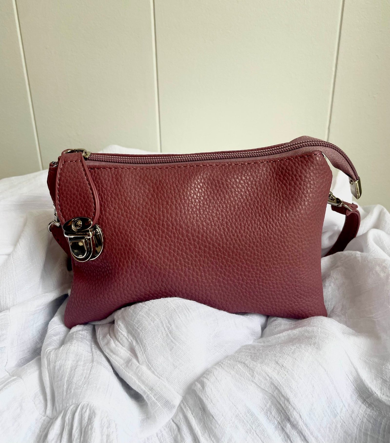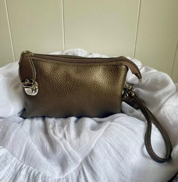 Embrace functionality AND fashion with this beautiful purse. With its multiple pockets that can fit all of your items comfortably, a wristlet, crossbody strap, and a stylish clasp, this bag is perfect for any occasion.
