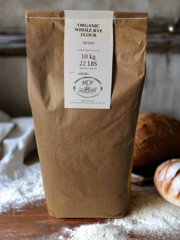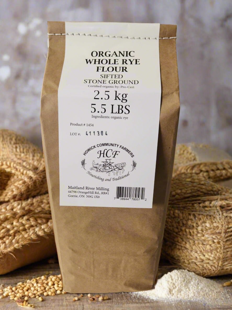 Our organic Whole Grain Rye Flour contains the entire rye seed. It is a full-flavoured flour that is perfect for hearty, peasant-style breads and for the production of natural rye starters and sourdough. This flour would also be known as a “Dark Rye” flour.