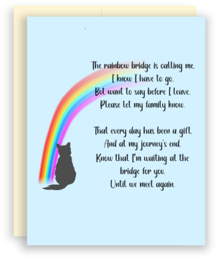 Losing a beloved pet is one of the hardest things to do. Provide comfort with this beautiful rainbow bridge card with an original poem by a Canadian author.