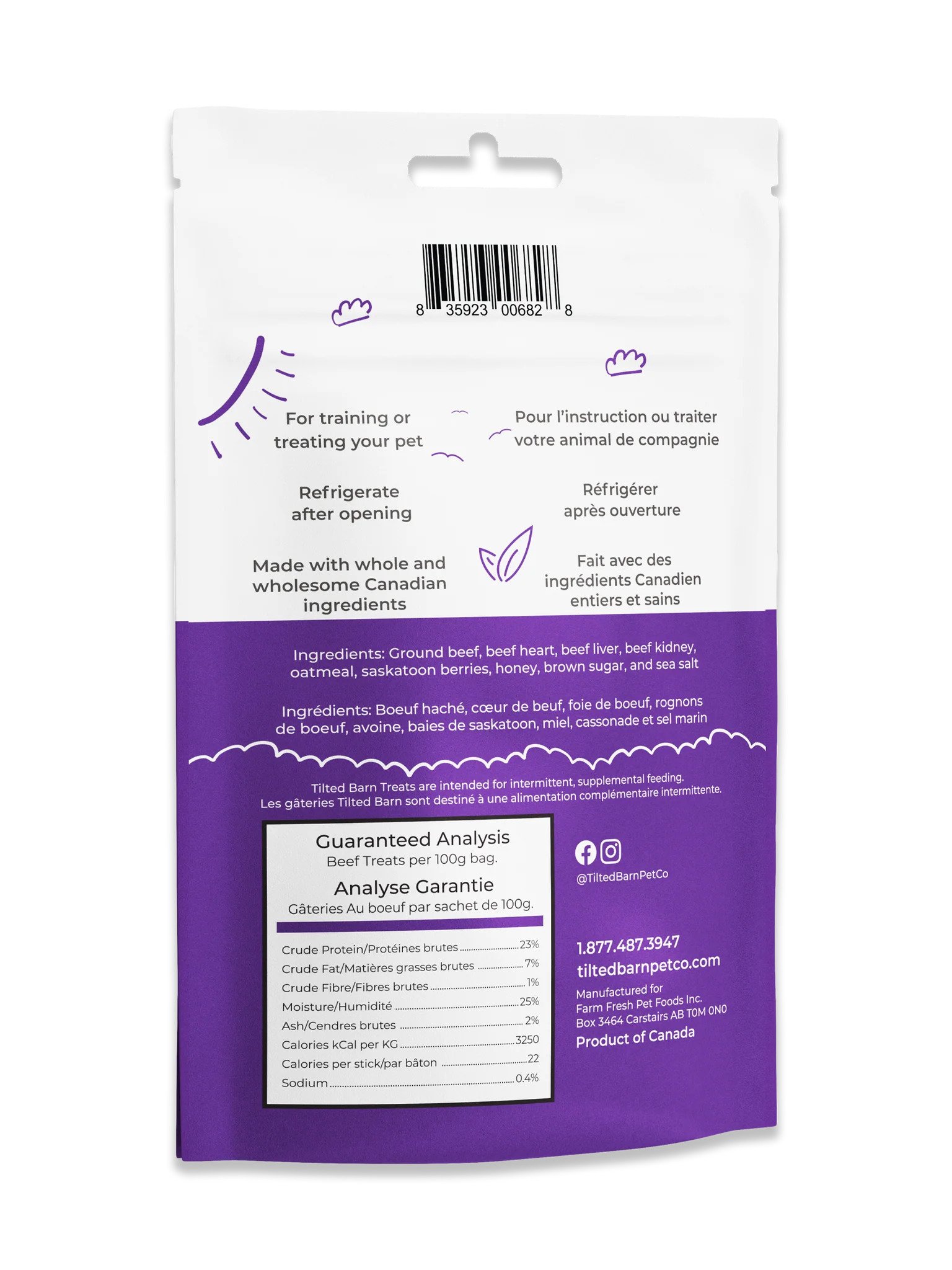Tilted Barn Pet Co Beef & Saskatoon Berry Dog Treats 100g